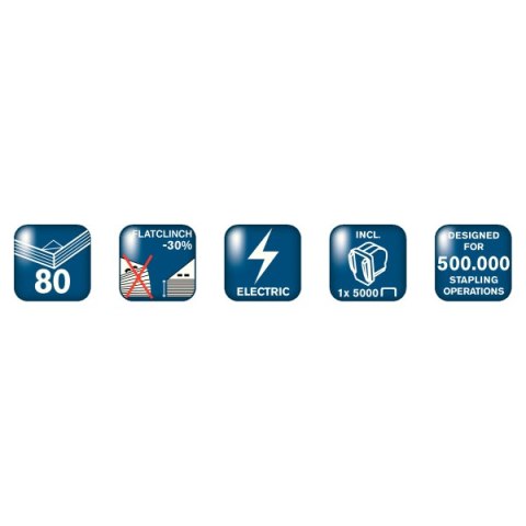 Innowacyjny zszywacz elektryczny bazujący na technologii wykorzystującej_zszywki w kasetach. Zapewnia zszycie 5000 razy przy użyciu 1 kasety._Niezależnie od grubości zszywanego pliku wykorzystywane są te same zszywki.__testowany na użycie 500 000 razy__zszywa do 50 kartek - 5050e lub 80 kartek - 5080e (80 gsm)__regulowana głębokość zszywania do 50 mm__system informujący o niskiej ilości zszywek__łatwa wymiana kasety__wyjątkowo cicha praca i niskie wibracje__w zestawie jedna kasetka (5000 zszywek)__2 lata gwarancji__jednostka sprzedaży 1 sztuka