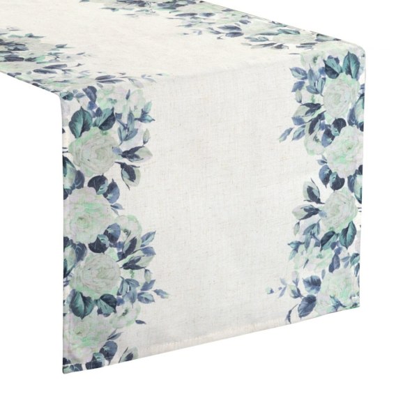 Bieżnik z nadrukowanym wzorem kwiatowym szerokość: 40 cm, długość: 180 cm, kolor: naturalny, Gramatura: 210 GSM, Skład: 92% poliester, 8% len