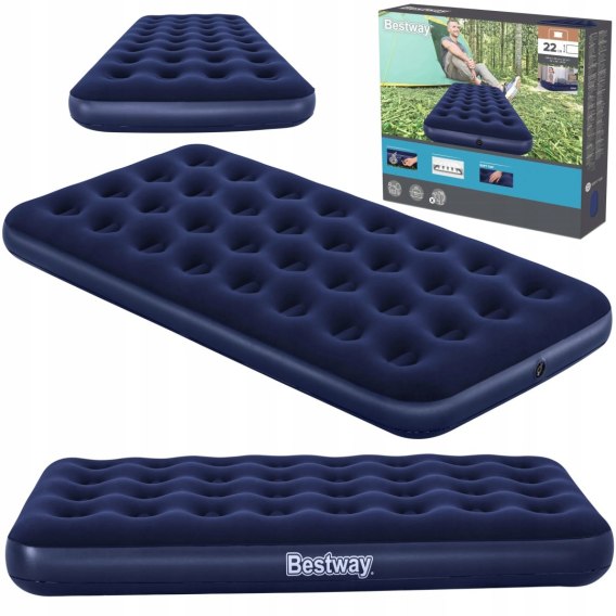 Materac Bestway jednoosobowy jest przydatny w czasie wyjazdów wakacyjnych, lecz również w domowych warunkach dla przyjezdnych gości. Wyprodukowany z materiału PVC, który jest odporny na zniszczenia. Górna część pokryta jest z materiałem welurowym, który jest miękki i przyjemny w dotyku.