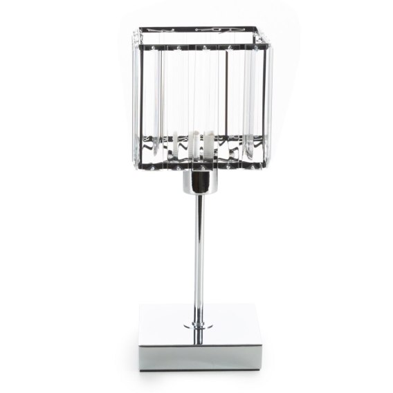 Lampa dekoracyjna szerokość: O 13 cm, długość: 31 cm, kolor: transparentny, Skład: lampa: metal; abażur: kryształ , Zasilanie: CE 220-240V 50HZ , Żarowka: 1 X E14 MAX 40W , Klasa energetyczna: A-G