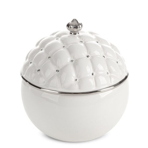 Pojemnik dekoracyjny szerokość: O 20 cm, długość: 23 cm, kolor: biały, Skład: glinka ceramiczna