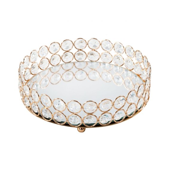 Metalowa taca dekoracyjna z lustrzanym dnem szerokość: fi 20 cm, długość: 6 cm, kolor: złoty, Skład: metal, szkło