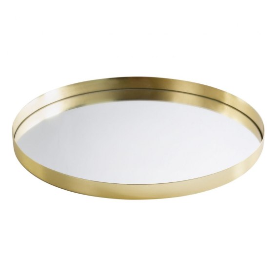 Metalowa taca dekoracyjna z lustrzanym dnem szerokość: fi 30 cm, długość: 3 cm, kolor: złoty, Skład: metal, szkło