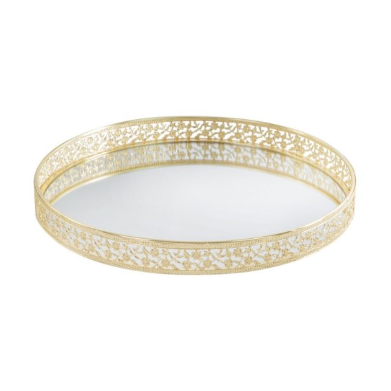 Metalowa taca dekoracyjna z lustrzanym dnem szerokość: fi 30 cm, długość: 3 cm, kolor: złoty, Skład: metal, szkło