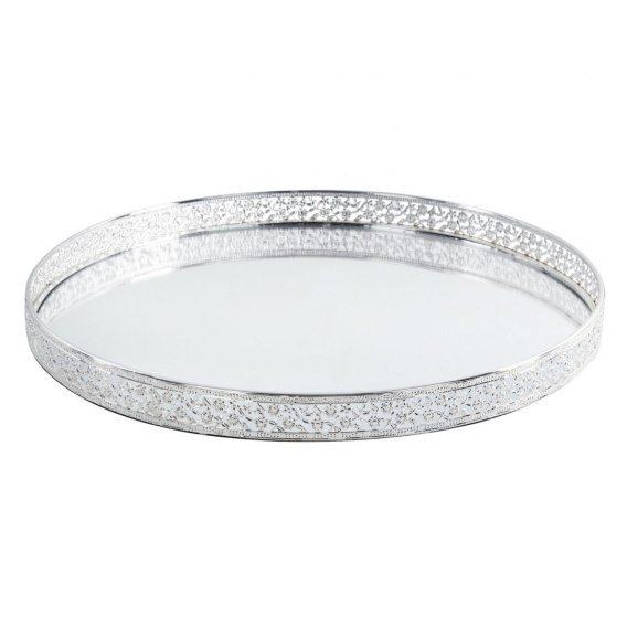 Metalowa taca dekoracyjna z lustrzanym dnem szerokość: fi 40 cm, długość: 3 cm, kolor: srebrny, Skład: metal, szkło