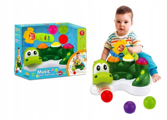 👉 Podczas uderzania młoteczek emituje różnorodne dźwięki i miga kolorowymi światełkami.