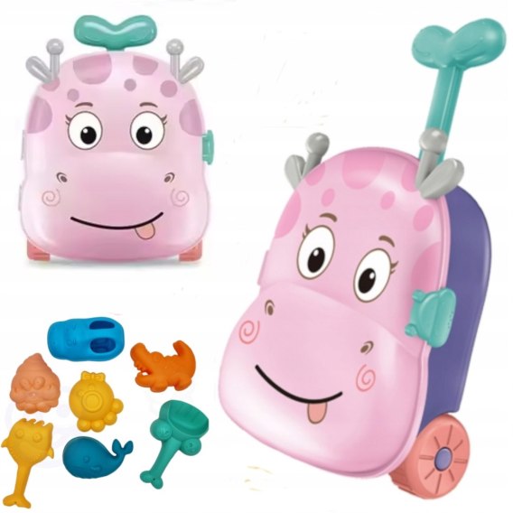 Walizka jest super dodatkiem, dzięki niej dziecko może zapakować ulubione zabawki na plażę i same prowadzić walizkę. Uchwyt walizki jest regulowany. Walizka zamykana jest na zatrzask.