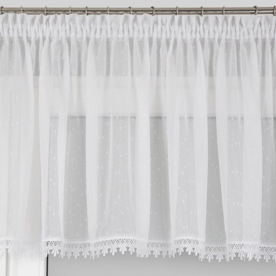 Firana gotowa z ozdobną koronką szerokość: 400 cm, długość: 65 cm, kolor: biały, Skład: 100% poliester