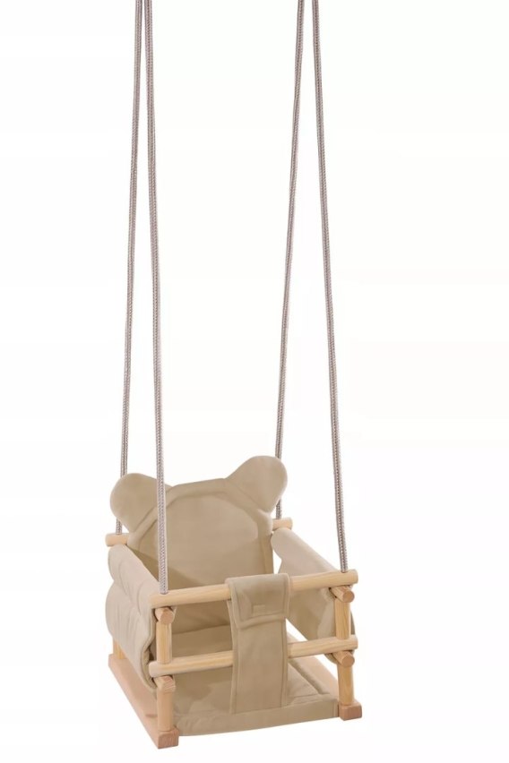 Huśtawka kubełkowa welurowa drewniana miś beżowa HWMB6436