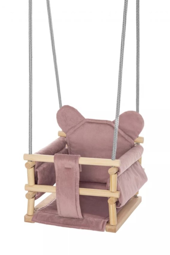 Huśtawka kubełkowa welurowa drewniana miś różowa HWMR6429