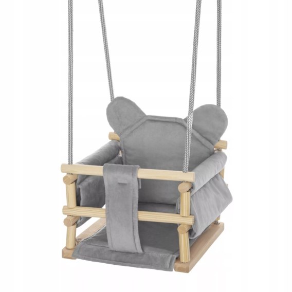 • Huśtawka kubełkowa welurowa drewniana miś szara HWMSZ3718