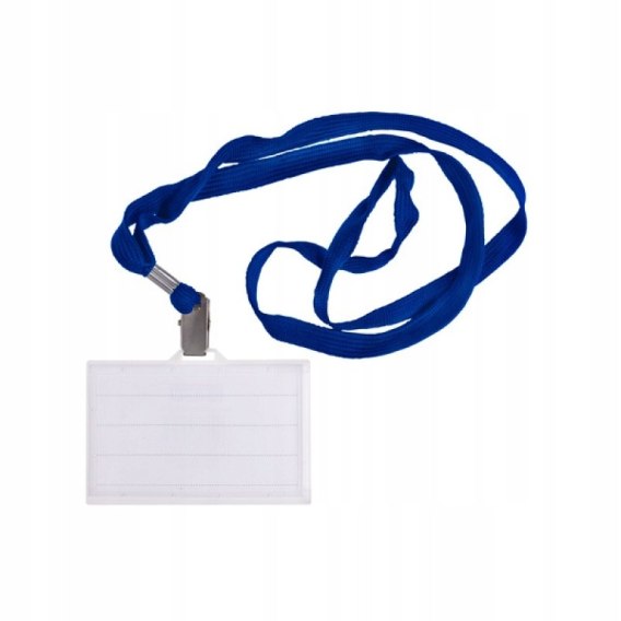 Wyposażony w jedwabną taśmę w kolorze czarnym lub niebieskim_posiada wycięcie na palec ułatwiające wysunięcie karty, wizytówki_rozmiar przystosowany do kart wizytowych w rozmiarze 85x50mm_w komplecie karta opisowa na nazwisko_wykonany z elastycznego polipropylenu odpornego na pęknięcia_doskonale chroni karty magnetyczne, karty zbliżeniowe oraz identyfikatory_długość taśmy z klipsem: 51cm_szerokość taśmy: 10mm_kolor niebieski