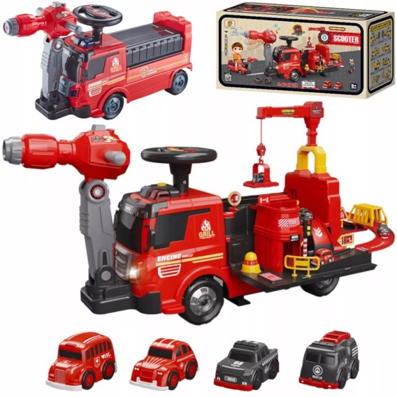 Jeździk 2w1 straż pożarna autka parking dźwig dźwięk pistolet na wodę ZH921
