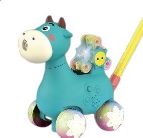 Rewelacyjna krówka jeździk pchacz puszczająca bańki mydlane. Skradnie serce każdego malucha. Podczas puszczania baniek mydlanych tle leci wesoła melodyjka.