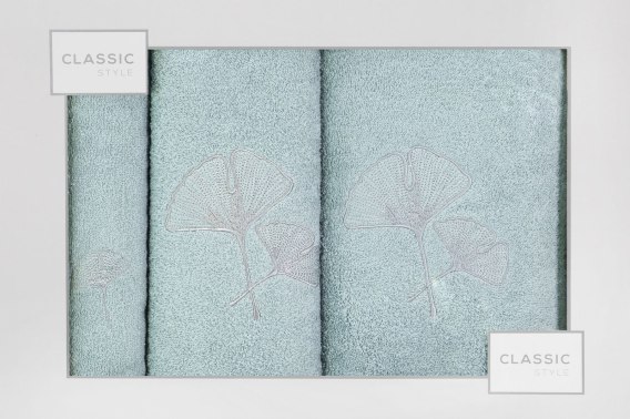 Komplet ręczników z haftem szerokość: 56 cm, długość: 36 cm, kolor: miętowy, Gramatura: 380 GSM, Skład: 100% bawełna