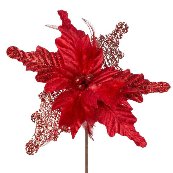 Świąteczny kwiat dekoracyjny kolor: czerwony, Skład: tworzywo sztuczne
