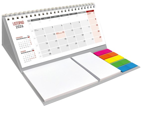 Kalendarz z notesem miesięczny spiralowany KB054B szary 2026 WOKÓŁ NAS