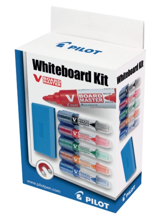 Komplet markerów suchościeralnych do tablic (5szt. mix kolor marker + gąbka + holder) V-BOARD MASTER PILOT PIKIT-VBM-S5