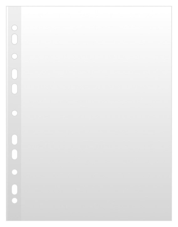 Koszulki wykonane z miękkiej, ekologicznej folii polipropylenowej (50_m), specjalnie wzmocniony brzeg_groszkowe, przeźroczyste_otwarte na górze_antyelektrostatyczne, antyrefleksyjne_przeznaczone na dokumenty w formacie A4_ilość dziurek do wpięcia: 11_rozmiar: 230x300mm_100 sztuk w j.s._kolor przeźroczysty