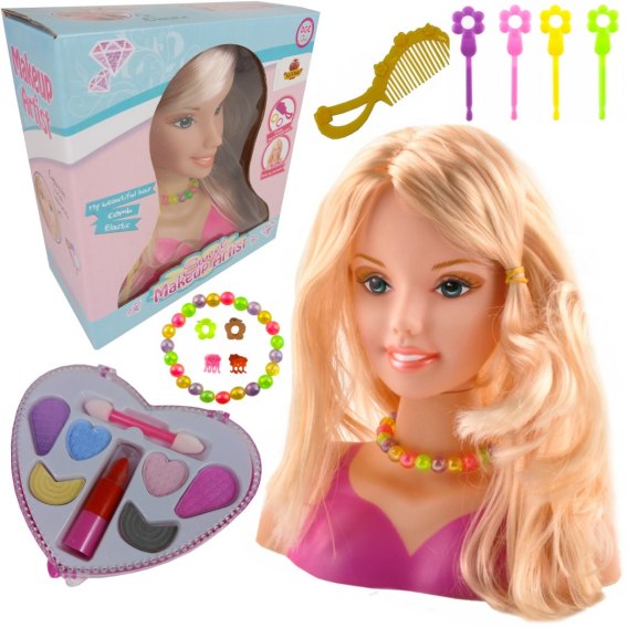LALKA GŁOWA DO CZESANIA STYLIZACJI MAKIJAŻ, PRAWDZIWE MALOWIDŁA