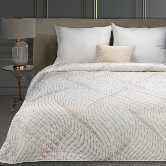Narzuta welwetowa, wykonana techniką "hot press"z foliowym nadrukiem szerokość: 220 cm, długość: 240 cm, kolor: biały, Gramatura: 210+120+70 GSM, Skład: 100% poliester