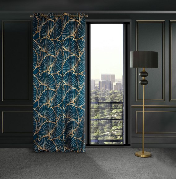 Zasłona welwetowa z nadrukiem szerokość: 140 cm, długość: 250 cm, kolor: granatowy, Gramatura: 200 GSM, Skład: 100% poliester