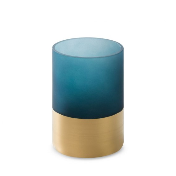 Świecznik dekoracyjny szerokość: fi 10 cm, długość: 15 cm, kolor: granatowy, Skład: 100% szkło