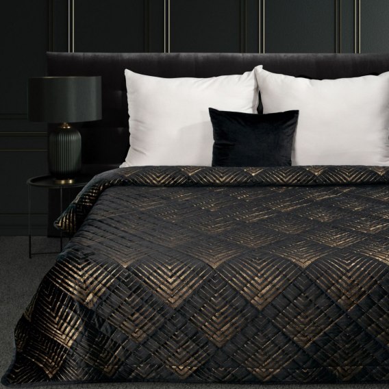 Narzuta welwetowa, wykonana techniką "hot press"z foliowym nadrukiem szerokość: 170 cm, długość: 210 cm, kolor: czarny, Gramatura: 210+120+70 GSM, Skład: 100% poliester