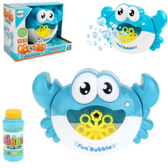 Maszynka do baniek mydlanych krab niebieski płyn świecące oczy muzyka dźwięk