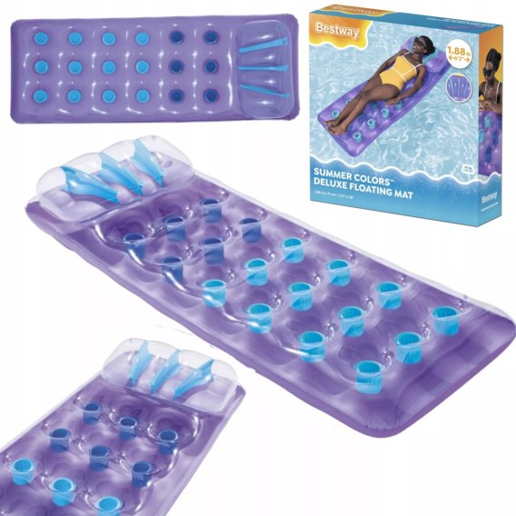 Materac do pływania firmy Bestway to idealne rozwiązanie na letni wypoczynek nad morzem, jeziorem w basenie czy we własnym ogrodzie. Dmuchany materac wykonany jest z wytrzymałego materiału PCV, który posłuży przez klika lat. Charakterystyczną cechą nadmuchiwanego materaca jest zagłówek zapewniający komfort . Materac do pływania to wspaniała propozycja dla osób ceniących wygodę i relaks na świeżym powietrzu