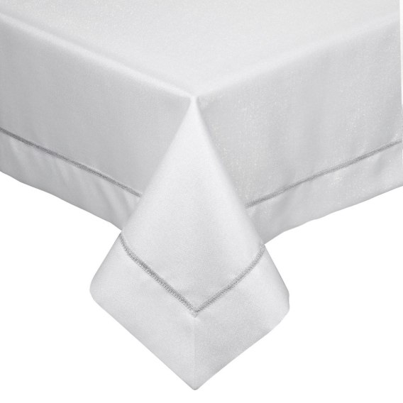 Obrus ze srebrną lamówką,zapakowany w eleganckie pudełko szerokość: 145 cm, długość: 350 CM cm, kolor: kremowy, Skład: 100%poliester