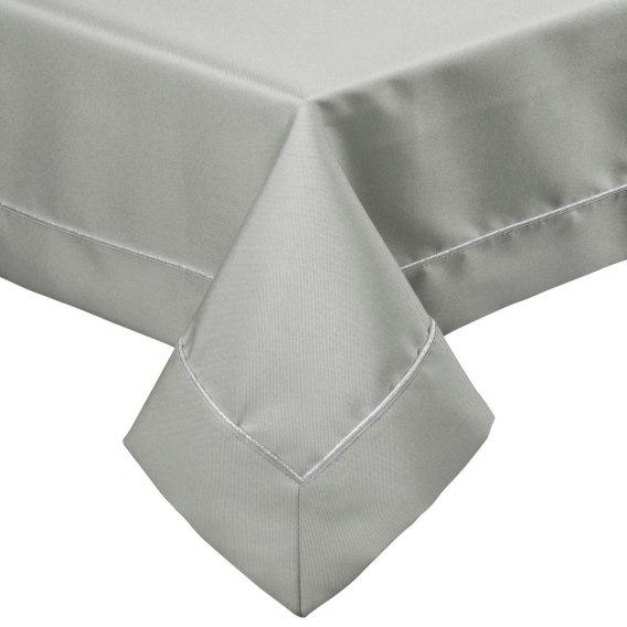 Obrus z delikatną srebrną lamówką,zapakowany w eleganckie pudełko szerokość: 145 cm, długość: 400 cm, kolor: srebrny, Gramatura: 190 GSM, Skład: 100% poliester