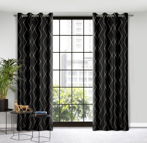 Zasłona welwetowa zdobiona haftem szerokość: 140 cm, długość: 250 cm, kolor: czarny, Gramatura: 258 GSM, Skład: 100% poliester