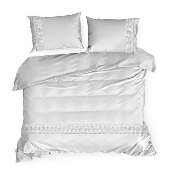 Komplet pościeli bawełnianej zdobiony koronką szerokość: 160 cm, długość: 200 cm, kolor: biały, Gramatura: 105gsm GSM, Skład: tkanina: 100% bawełna; część ozdobna (koronka): 100% poliester