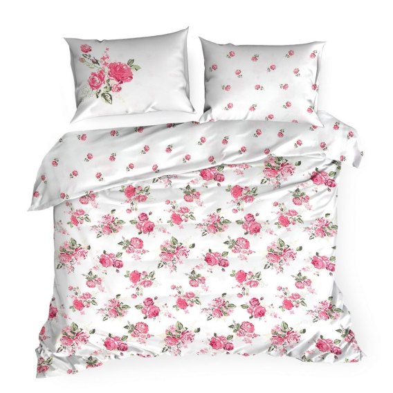 Komplet pościeli bawełnianej z nadrukiem kwiatowym szerokość: 140 cm, długość: 200 , 1 szt. 70 cm, kolor: biały, Gramatura: 100 GSM, Skład: 100% bawełna