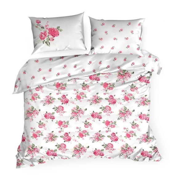 Komplet pościeli bawełnianej z nadrukiem kwiatowym szerokość: 220 cm, długość: 200 , 2 szt. 70 cm, kolor: biały, Gramatura: 100 GSM, Skład: 100% bawełna