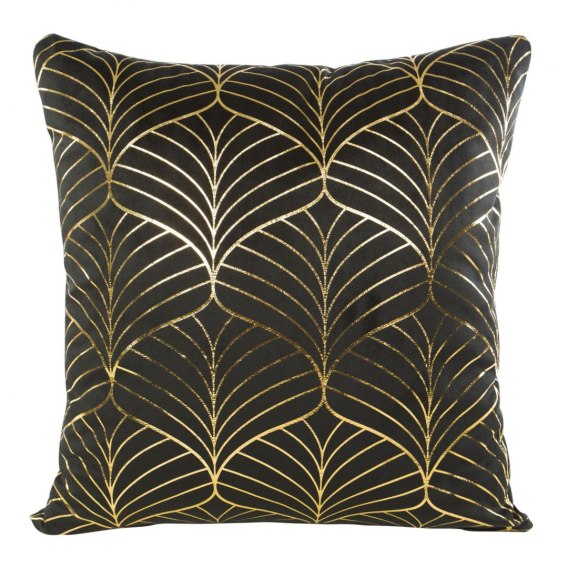 Poszewka welwetowa ze złotym nadrukiem szerokość: 45 cm, długość: 45 cm, kolor: czarny, Gramatura: 200 GSM, Skład: 100% poliester