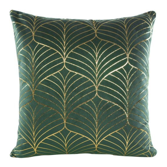 Poszewka welwetowa ze złotym nadrukiem szerokość: 45 cm, długość: 45 cm, kolor: zielony, Gramatura: 200 GSM, Skład: 100% poliester
