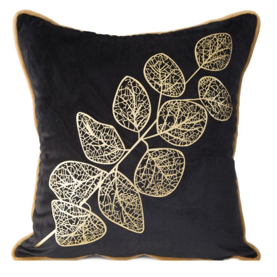 Welwetowa poszewka dekoracyjna ze złotym nadrukiem szerokość: 45 cm, długość: 45 cm, kolor: czarny, Gramatura: 250 GSM GSM, Skład: 100% poliester