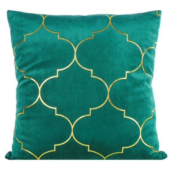 Welwetowa poszewka dekoracyjna ze złotym nadrukiem szerokość: 45 cm, długość: 45 cm, kolor: zielony, Gramatura: 200 GSM, Skład: 100% poliester
