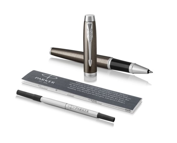 Lakier w kolorze espresso, spiralny szlif i chromowane pierścienie._W opakowaniu prezentowym Parker. Pewność i profesjonalizm._Solidny partner. Inteligentny, pewny i profesjonalny. Linia Parker IM to stalówki ze stali nierdzewnej i wykończenia oddające najlepszą tradycję marki. Każdy detal linii zaprojektowany został tak, by zapewnić niezawodność pisania.