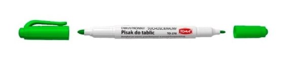 • Pisaki 2-stronne do białych tablic TOMA, 2 końcówki cienkie 0,5 i 0,8mm, zielony TO-270 Toma