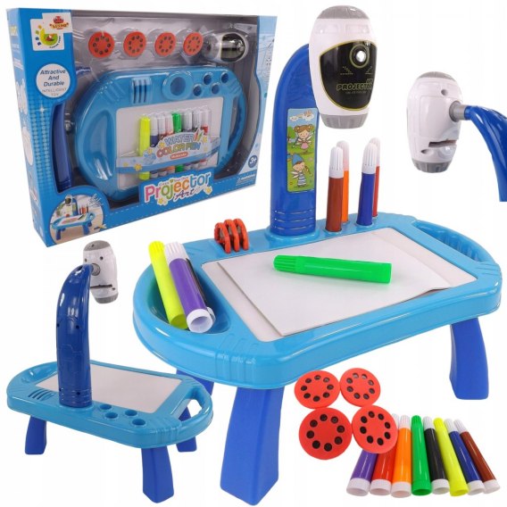 Projektor do rysowania dla dzieci działa na zasadzie projekcji obrazów z wymiennych krążków na powierzchnię do rysowania.