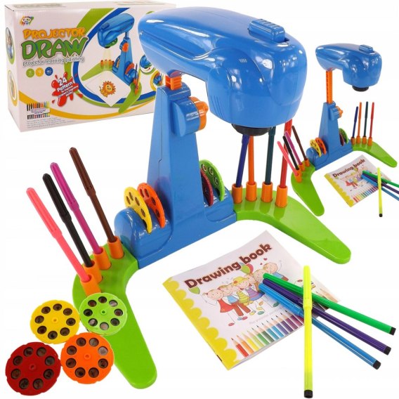 Projektor do nauki rysowania i malowania to świetny sposób na naukę poprzez zabawę dla Twojego dziecka. Już od najmłodszych lat pobudza wyobraźnie, ćwiczy spostrzegawczość oraz pamięć. Edukacyjna zabawka, która rozwinie w dziecku zdolności plastyczne, które zaowocują w dalszej nauce w przedszkolu, a później w szkole. Rzutnik w ładnych kolorach niebieskim i zielonym to idealny prezent dla każdego chłopca, który lubi rysować.