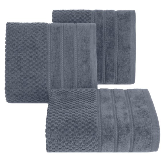 Ręcznik bawełniany o strukturze krateczki ze stebnowaniem szerokość: 30 cm, długość: 50 cm, kolor: stalowy, Gramatura: 500 GSM, Skład: 100% bawełna