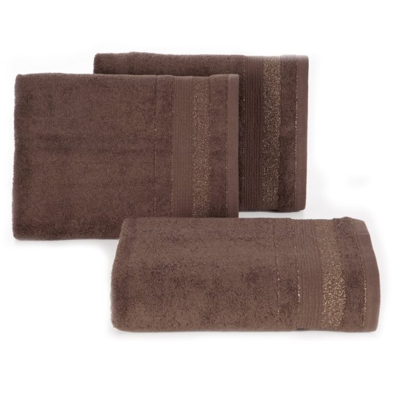Ręcznik bawełniany z żakardową bordiurą z błyszczącą nicią szerokość: 30 cm, długość: 50 cm, kolor: ciemnobrązowy, Gramatura: 500 GSM, Skład: 100% bawełna; część ozdobna: 95% bawełna, 5% poliester
