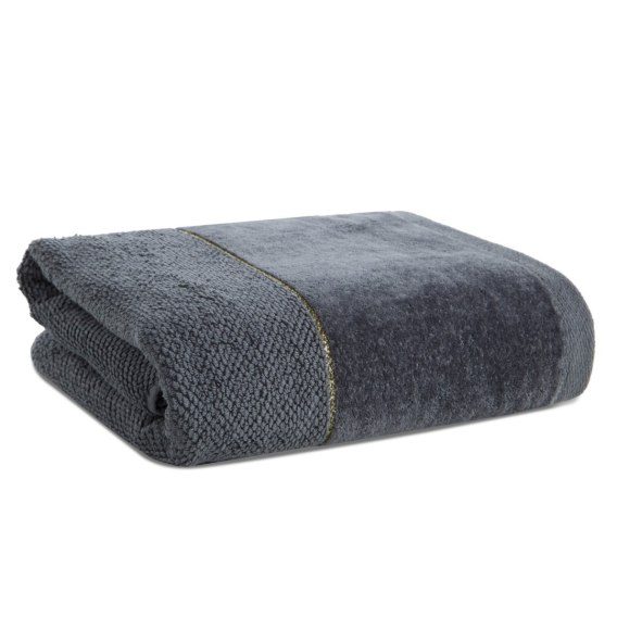 Ręcznik bawełniany z welurową bordiurą i błyszczącą nicią szerokość: 30 cm, długość: 50 cm, kolor: stalowy, Gramatura: 550 GSM, Skład: 100% bawełna; część ozdobna: 97% bawełna, 3% poliester