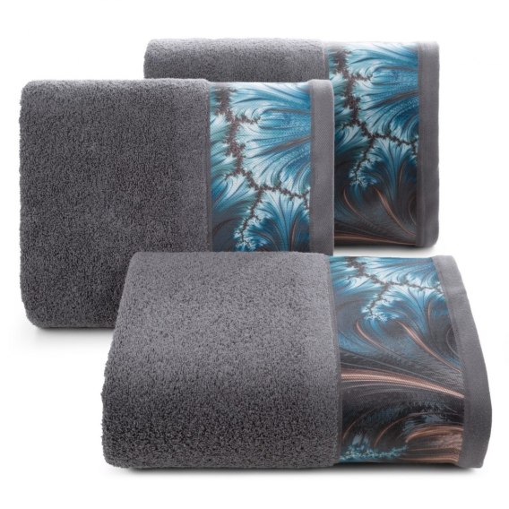 Ręcznik z drukowaną bordiurą szerokość: 50 cm, długość: 90 cm, kolor: stalowy, Gramatura: 500 GSM, Skład: 100% bawełna; 94% bawełna 6% poliester