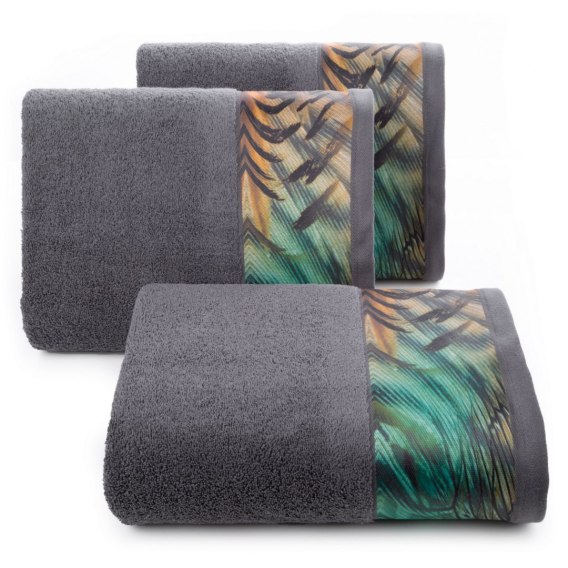 Ręcznik z drukowaną bordiurą szerokość: 50 cm, długość: 90 cm, kolor: stalowy, Gramatura: 500 GSM, Skład: 100% bawełna; 94% bawełna 6% poliester