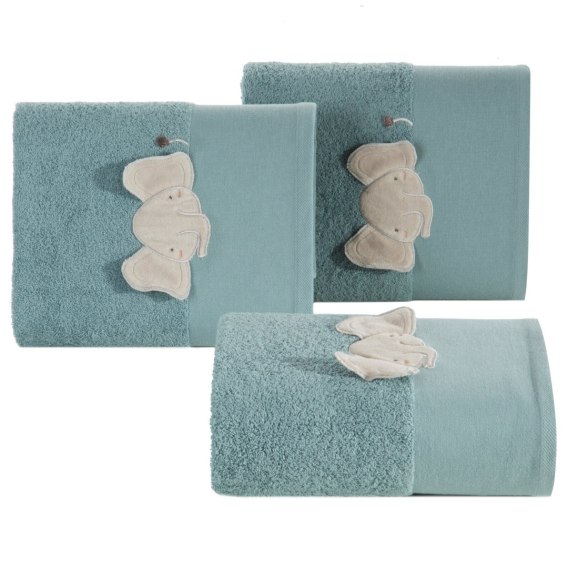 Dziecięcy ręcznik bawełniany z aplikacją szerokość: 70 cm, długość: 140 cm, kolor: niebieski, Gramatura: 480 GSM, Skład: 100% bawełna